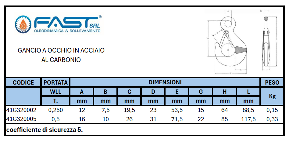 GANCIO A OCCHIO CON SIC. T.0,250 ACCIAIO AL CARBONIO