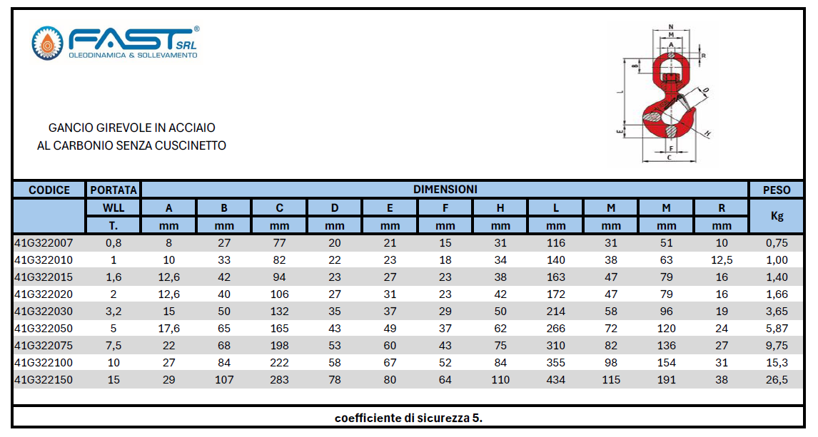 Attenzione! Gancio senza cuscinetto