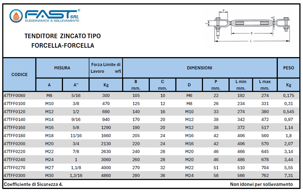 FORCELLA acciaio S235JR - UNI EN 10025-2 VITE acciaio classe resistenza 4.6 - EN ISO 898/1