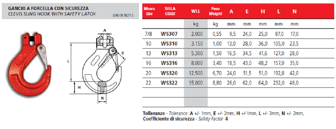 Collaudato a fatica a 20.000 cicli ad un carico pari a 1,5 volte il carico di lavoro (WLL).
