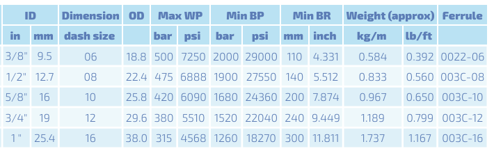 Tubo Interno: Gomma sintetica, estrusa senza giunzioni e di spessore uniforme.